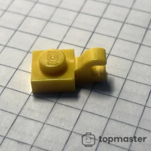 Пластина LEGO жовтого кольору 1 x 1 з горизонтальним кліпом (товстий відкритий кліп ‘O’) використовувалася в щонайменше 119 наборах LEGO протягом останніх 28 років з моменту її впровадження у 1997 році. Цю деталь також можна знайти принаймні в 44 інших кольорах. Її дизайнерські ID – 52738, 61252.